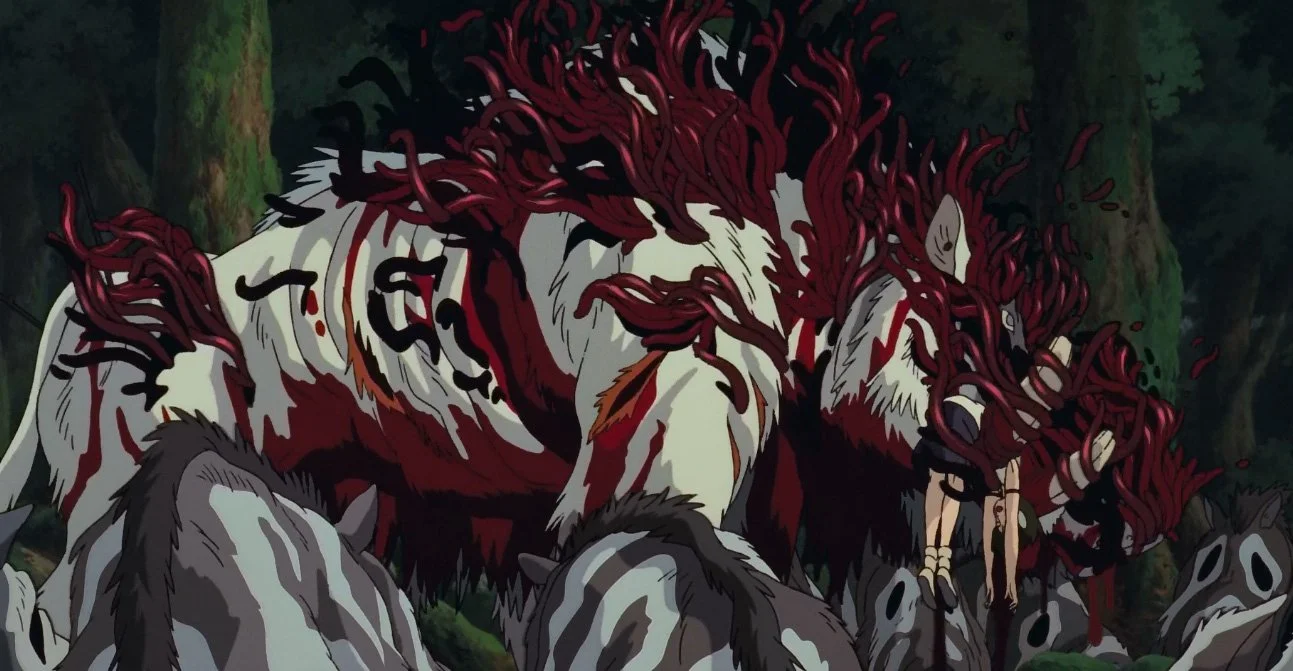 What stood out the most to me was the film’s astonishing sound design. The hollow, metallic bellows of Irontown are contrasted with the peacefully rustling leaves and gently rattling kodamas of the forest, immersing viewers in the dreamlike landscape of Princess Mononoke’s world. I particularly loved the use of reverent silence every time the eerie Forest Spirit appears, reflecting the tranquility it represents as the ruler of the forest. That same silence is then twisted into a representation of grief and uncertainty after the Forest Spirit is killed in the film's climactic battle, emphasising the void its absence leaves behind.